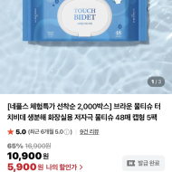 브라운 터치비데 물티슈 48매 5팩 5,900원