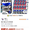 펩시 제로 슈거 모히토향 210ml 60캔 (21,480원/무료)