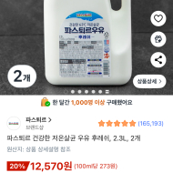파스퇴르 건강한 저온살균 우유 후레쉬, 2.3L, 2...