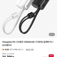 ChargeGo PD 고속충전 10000mAh 보조배터리 1.2만...