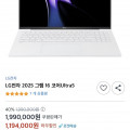 LG전자 2025 그램 16Z90S-GA5VK (1,194,000원/무료)