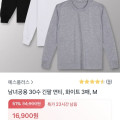 남녀공용 30수 긴팔면티 화이트 3매 M (16900/무배)