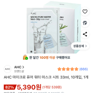 AHC 마스크 시트 33ml 10개입x1개 5,390원