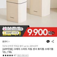 크레마 스마트 자동 센서 휴지통 쓰레기통 12L (9...
