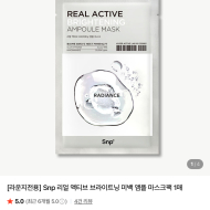 Snp 리얼 액티브 브라이트닝 미백 앰플 마스크팩 ...
