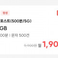 통화 500분, 문자 500건, 데이터 5GB(1,900원/평생)