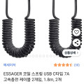 ESSAGER 코일 스프링 USB C타입 7A 고속충전 케이블 2개 1.8m (와우 7,550원/무료)