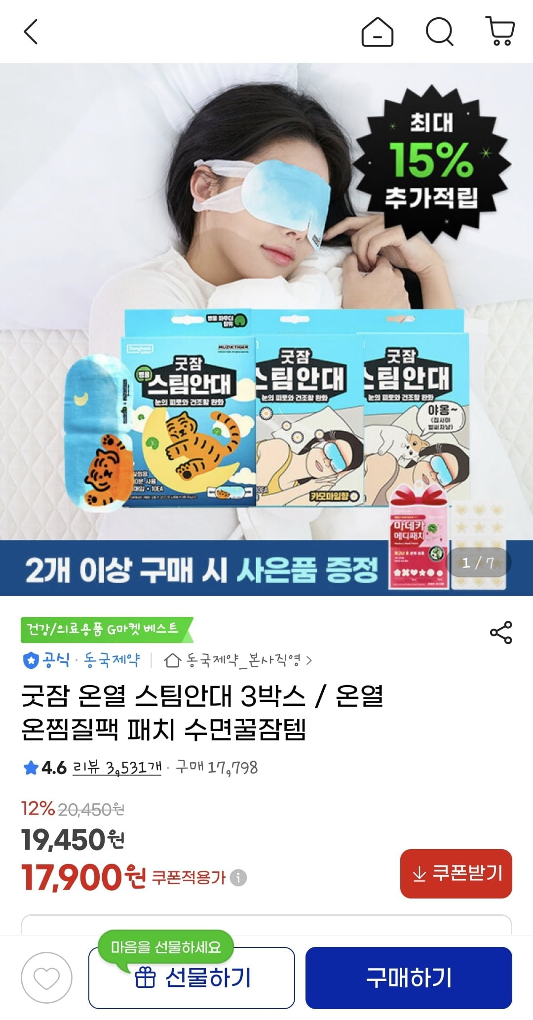 동국제약 온열 스팀안대 10매입 3박스 (17,900원/무료)