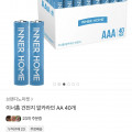 이너홈 건전지 알카라인 AA 40개(9,900원/무료배송)