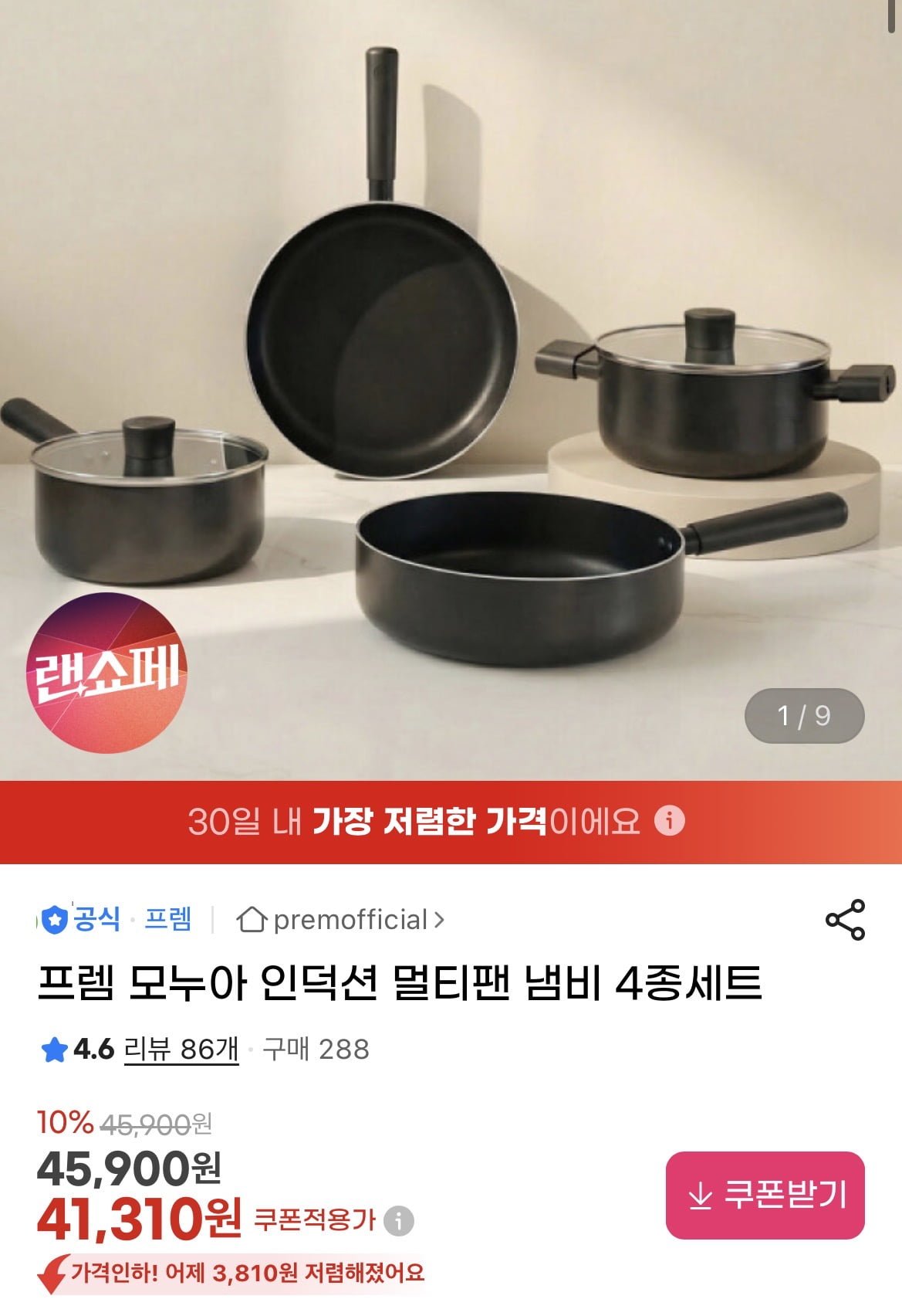 프렘 모누아 인덕션 멀티팬 냄비 4종세트 (41,310원/무배)