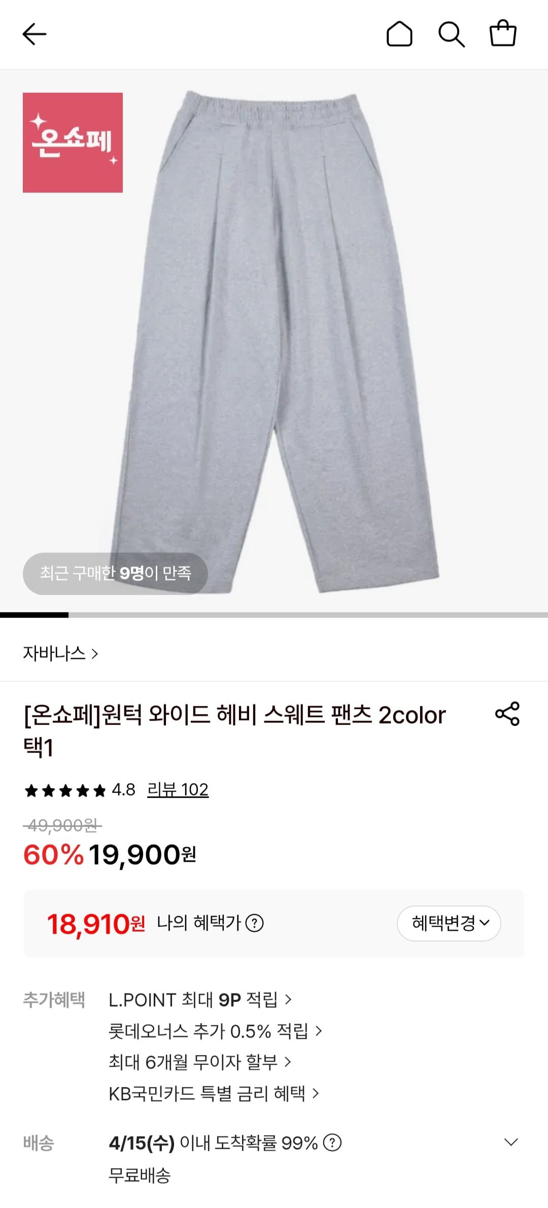 자바나스 원턱 와이드 헤비 스웨트 팬츠 (18,910원/무료)