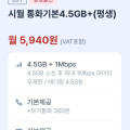 통화 기본, 데이터 4.5GB+1Mbps(5,940원/평생)