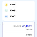 통화 400분, 데이터 4.5GB(1,100원/평생)