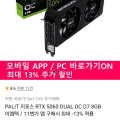 PALIT 지포스 RTX 5060 DUAL OC D7 8GB 이엠텍 (신한513,560원 / 무료)