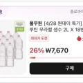 타임딜] 풀무원 워터루틴 무라벨 생수 2L X 18병 (7,670원/무료)