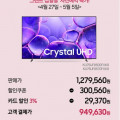 삼성 Crystal UHD 4K UHD 스마트TV 75인치 예약구매(949,630원/무료)